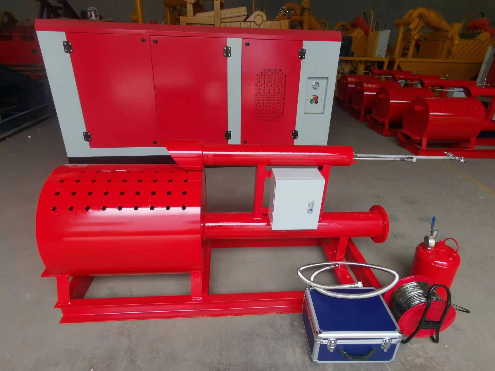 10、柴油霧化器槍,一邊進柴油,一邊進壓縮空氣(井場自配),并配置柴油罐一個(柴油罐附帶壓力表、安全閥、出油口、進油口、壓縮空氣進口等)、三通一個。