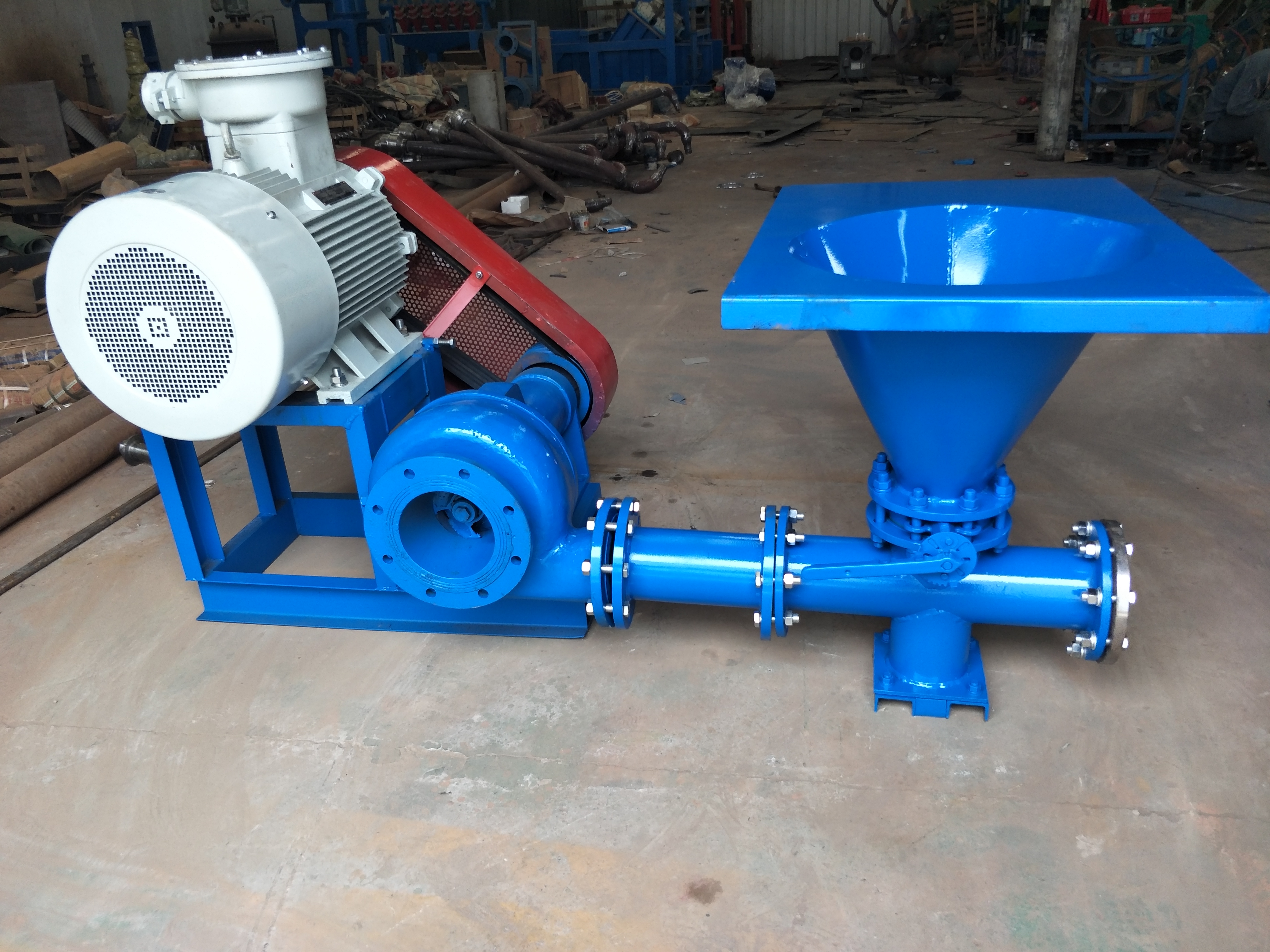 高效剪切泵是鉆井液循環(huán)系統(tǒng)中的重要設(shè)備之一,主要用來處理化學(xué)藥品及搬土,達(dá)到迅速配置鉆井液的目的。剪切泵設(shè)計(jì)有特殊的葉輪結(jié)構(gòu),在液流通過時(shí)可產(chǎn)生強(qiáng)大的剪切力,對液流中的化學(xué)藥品顆粒、搬土等固相進(jìn)行強(qiáng)力的粉碎分散,可使液流中的固相破碎并均勻分布。現(xiàn)場使用效果分析,用剪切泵處理鉆井液,可節(jié)約搬土用量20%以上,并且能夠顯著改善鉆井液濾失性能和泥餅質(zhì)量,建立良好的凝膠強(qiáng)度,更有效地保護(hù)井壁和防止油層污染,使鉆井液在低剪切速率下的攜砂能力顯著提高。